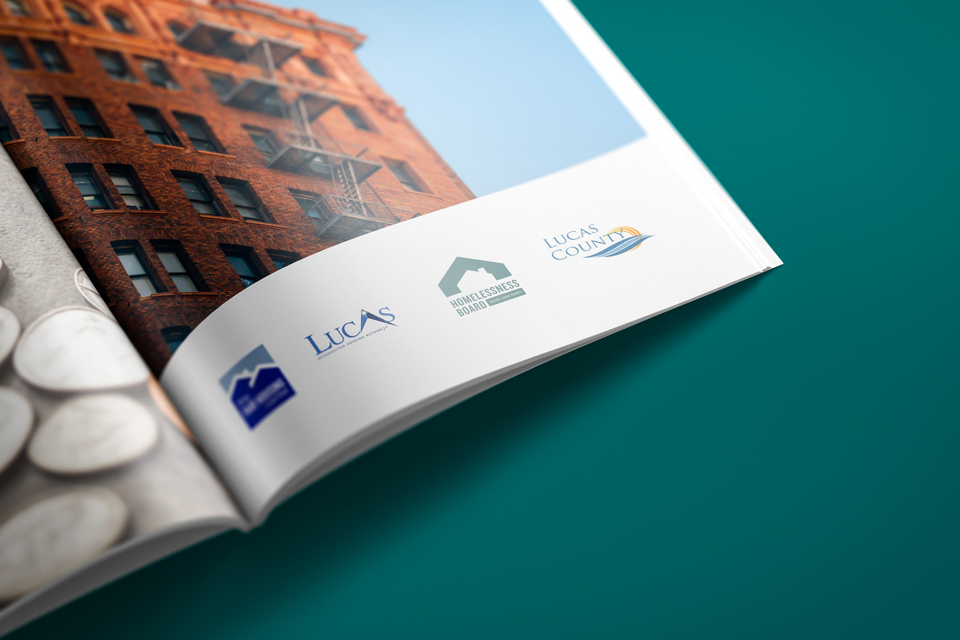 The below images show examples of how the Toledo Lucas County Homelessness Board brand can be applied.